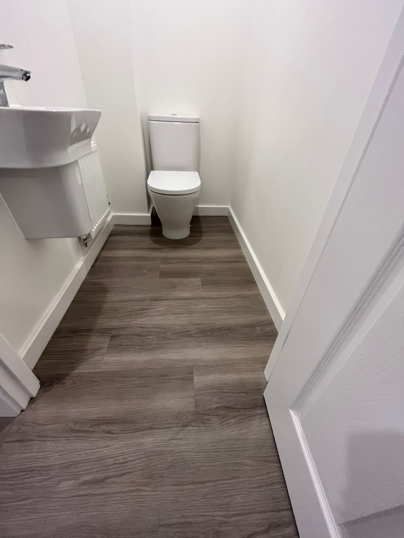 This latest project focused on elevating the luxury and comfort of the bathrooms and ensuites within a distinguished residential property. To achieve this, we meticulously installed Amtico LVT over 6mm ply, ensuring a durable and visually striking flooring solution that perfectly complemented the elegant aesthetic of the spaces. The addition of 8mm Cosy underlay further enhanced the underfoot comfort, creating a plush and inviting ambiance that exuded warmth and sophistication.